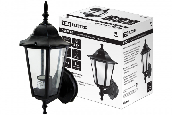 Купить Светильник 6060-01Р садово-парковый шестигранник, 60 Вт, вверх, черный, в разборе, Ч/Б, TDM
